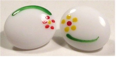 1940'S OVAL MILK GLASS BUTTONS w/RED-GREEN+YELLOW POSY