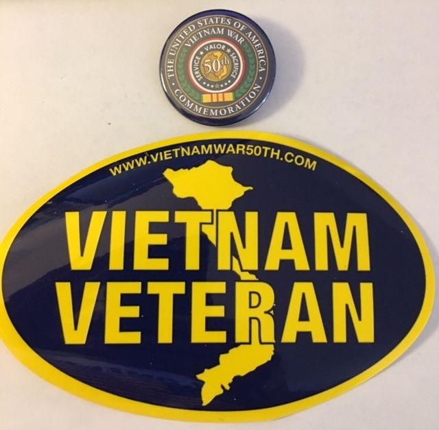 Title (ebay affiliate link): 50th Anniversary Vietnam War Commemoration Pinback and Vietnam Vet Sticker