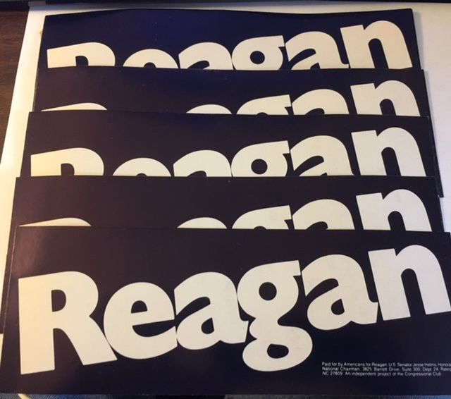 Five 3 by 8 1/2'' Reagan Campaign Bumper Stickers By Americans for Reagan