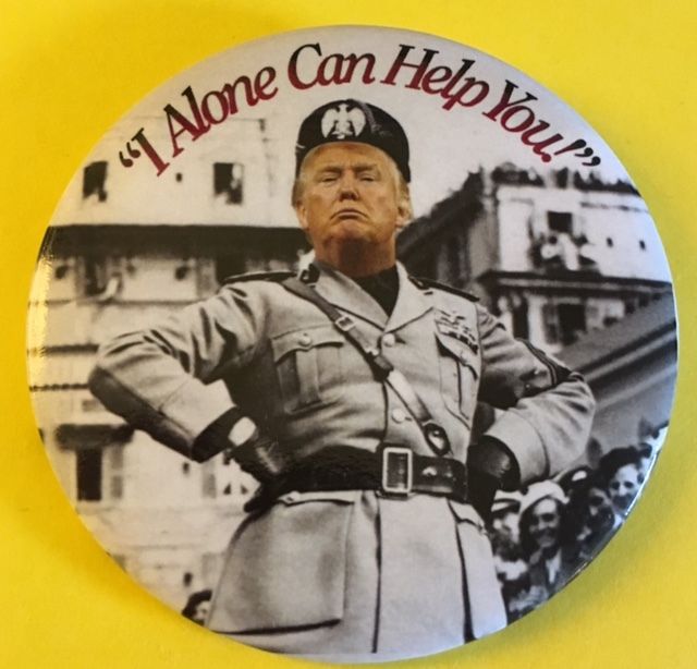 Title (ebay affiliate link): Trump as Mussolini "I Alone Can Help You!!" Political 3 Inch Pin Pinback Button