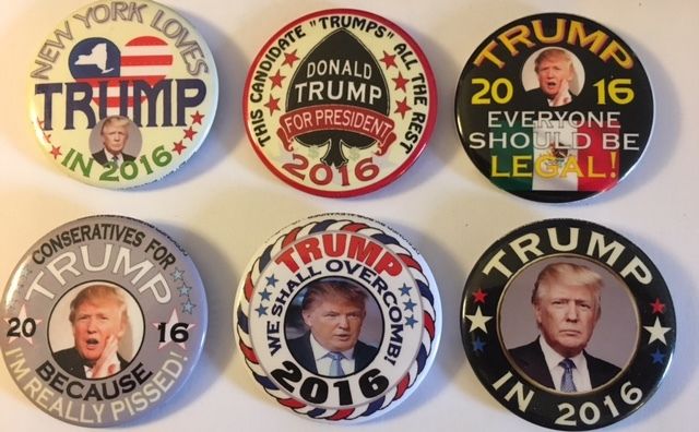 Title (ebay affiliate link): Neat Lot of Six 2 1/4" Guardfrog Trump Political Campaign Pinback Buttons