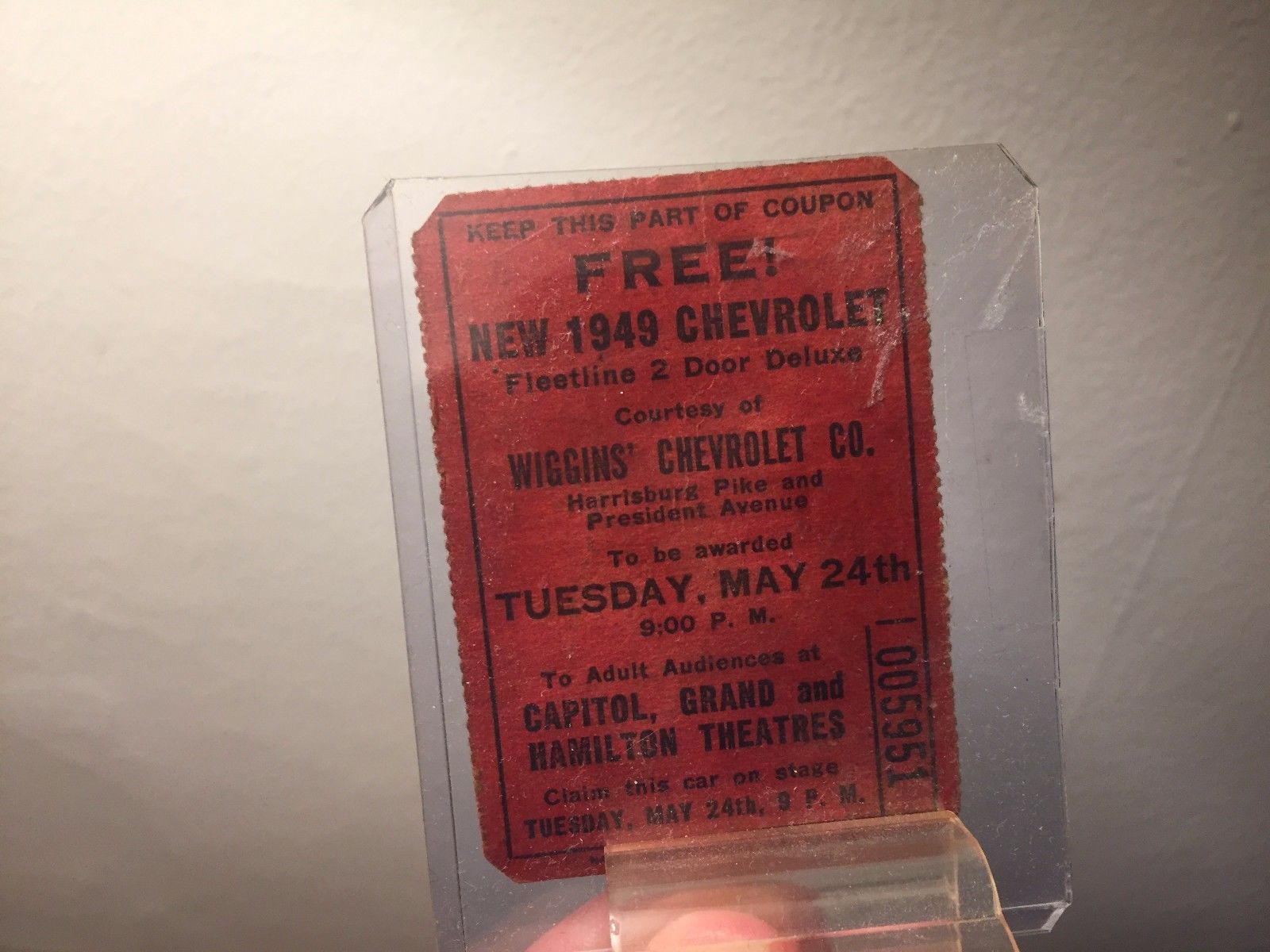 WIGGIN''S CHEVROLET LANCASTER PA WARNER BROS. THEATRE 1949 CHEVROLET GIVE AWAY