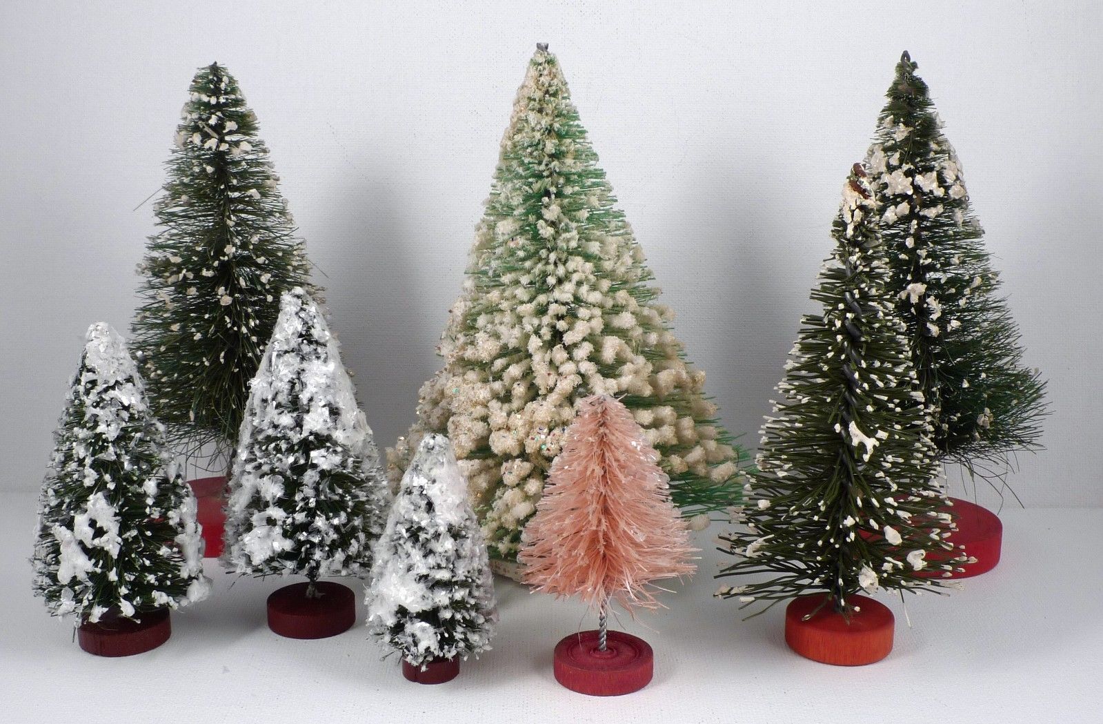 Forest Of 8 Vintage Bottle Brush Christmas Trees