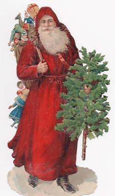 Larger Victorian Scrap Santa Christmas Tree & Toys Die Cut c1880
