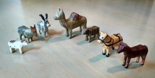 Title (ebay affiliate link): Vintage Lot of German Erzgebirge Wooden Animals Rare Camel Horses Goat Cows Putz