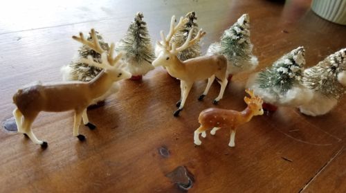 Title (ebay affiliate link): VINTAGE PLASTIC DEER BOTTLE BRUSH FLOCKED TREES PUTZ VILLAGE MINIATURE CHRISTMAS