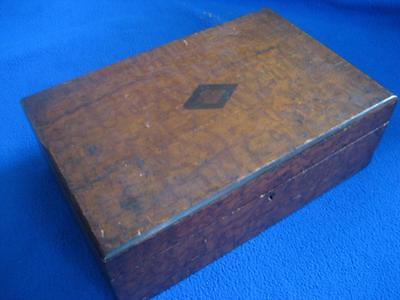 Antique Burl Wood Veneer Slant Box Writing Desk