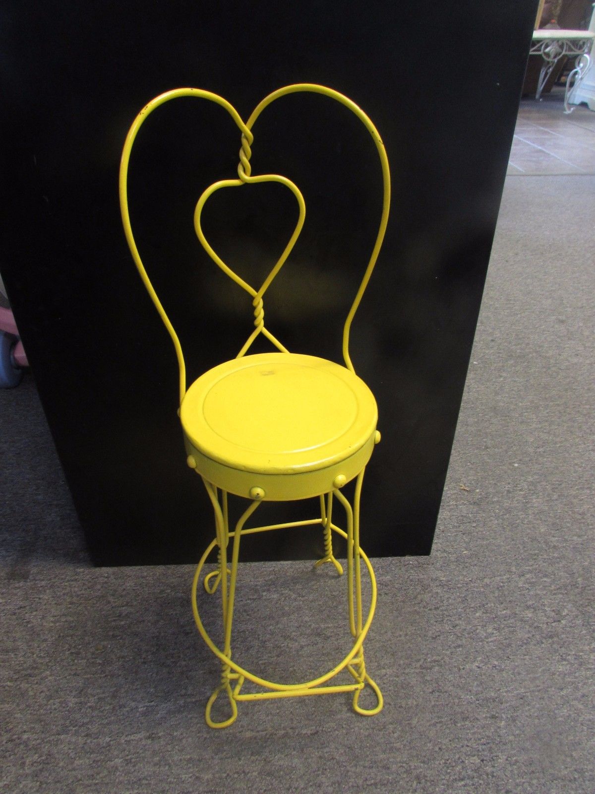Vintage Child''s Ice Cream Parlor Chair Vintage Wrought Iron Painted Yellow
