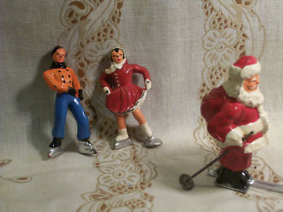 ANTIQUE CAST IRON TOYS SANTA ON SKI'S & SKATE USA & ??