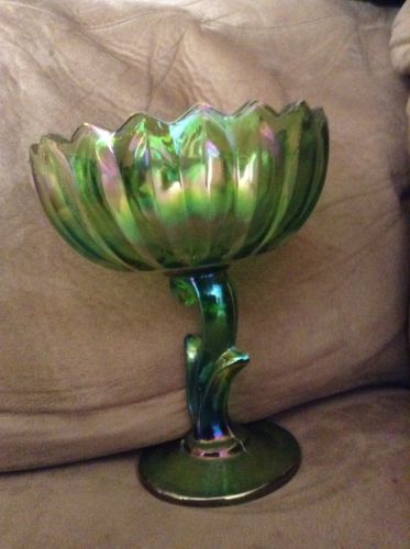 Title (ebay affiliate link): BEAUTIFUL IRIDESCENT BLUE/GREEN DEPRESSION ERA CARNIVAL GLASS FLOWER&STEM DISH-