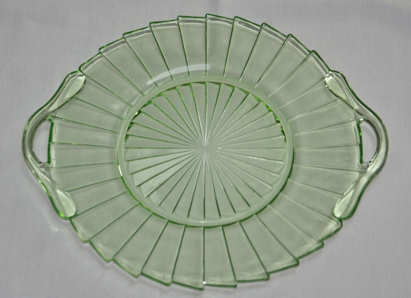 Title (ebay affiliate link): Green Depression Glass Serving/Dessert Dish/Plate With Handles