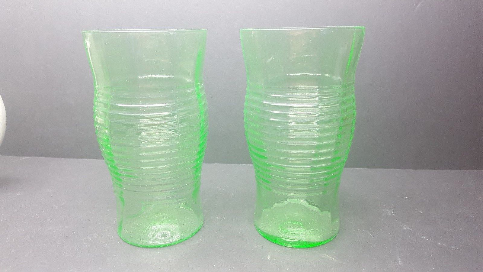 Title (ebay affiliate link): Vintage Green Tumbler Depression Glasses WIth Rings (2)