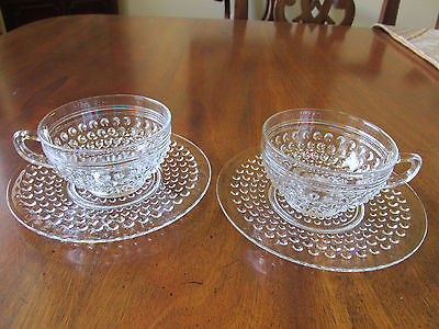 (2) VTG ANCHOR HOCKING 1930s CLEAR HOBNAIL DEPRESSION GLASS CUPS & SAUCERS EXCL