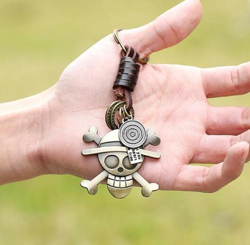 Title (ebay affiliate link): Vintage Leather One Piece Pirates Skull Keyring Keychain Alloy Key Ring Chain