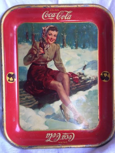 Title (ebay affiliate link): Vintage Coca-Cola Tray Winter Skating Girl 1941