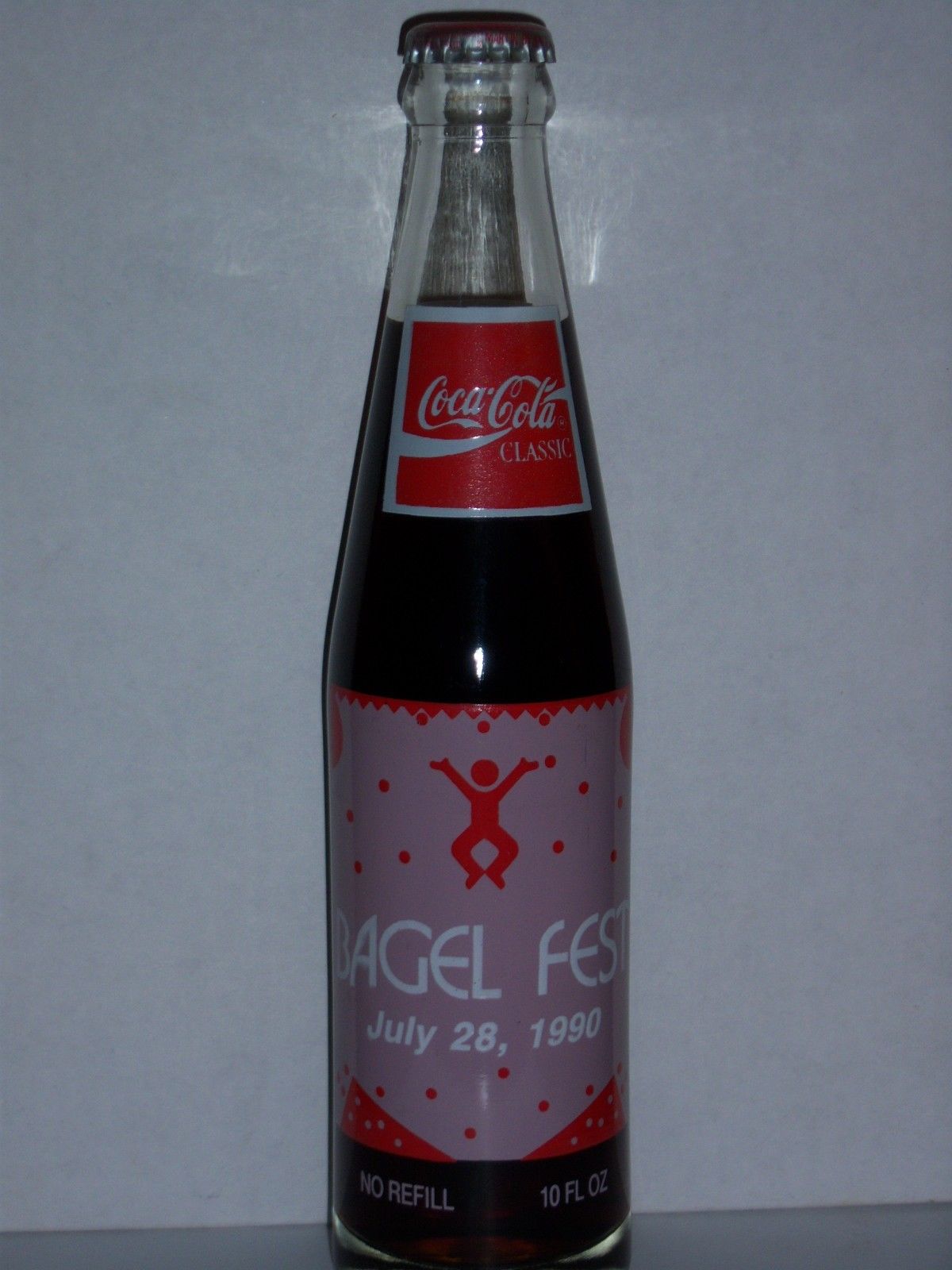 10 OZ COCA COLA COMMEMORATIVE BOTTLE -1990 BAGEL FEST JULY 28TH