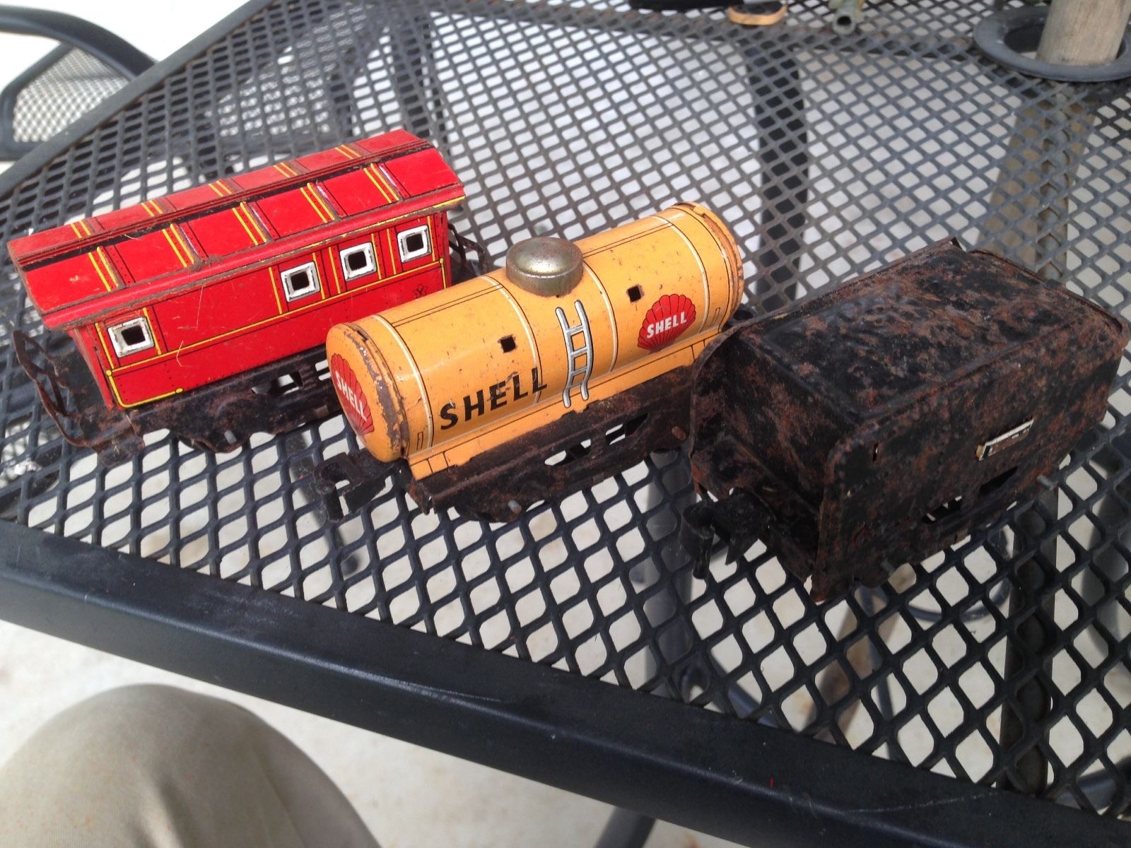 Japanese Vintage Tin Toy Train Railcars Tender Shell Tanker & Caboose