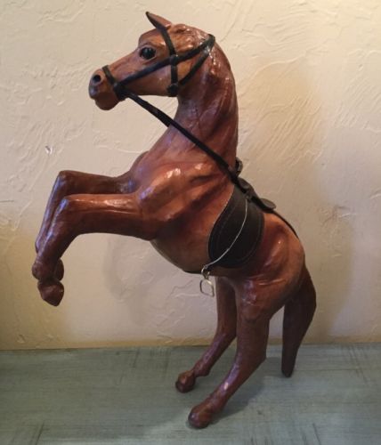 Title (ebay affiliate link): Antique Folk Art Leather Wrapped Horse Primitive Figure Rearing Stallion Statue
