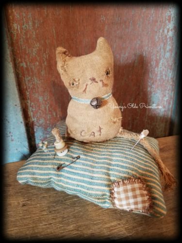 ~Primitive Early Style Rag Stuffed Cat PinKeep~