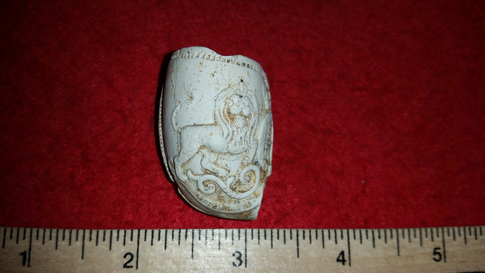 CIVIL WAR ERA CLAY SMOKING PIPE 5, COAT OF ARMS