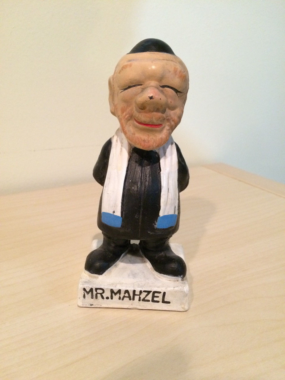 Title (ebay affiliate link): 1962 Vintage Chalkware "Mr Mahzel" Rabbi Ad Figure for Manischewitz (?)