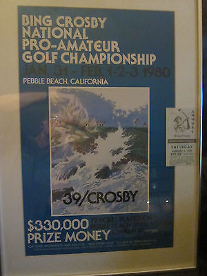 Vintage 1980 Bing Crosby Pro/am poster w/spectator pass Pebble Beach