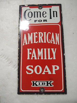 PORCELAIN SIGN AMERICAN FAMILY SOAP 7X3.5 INCHES APPROX
