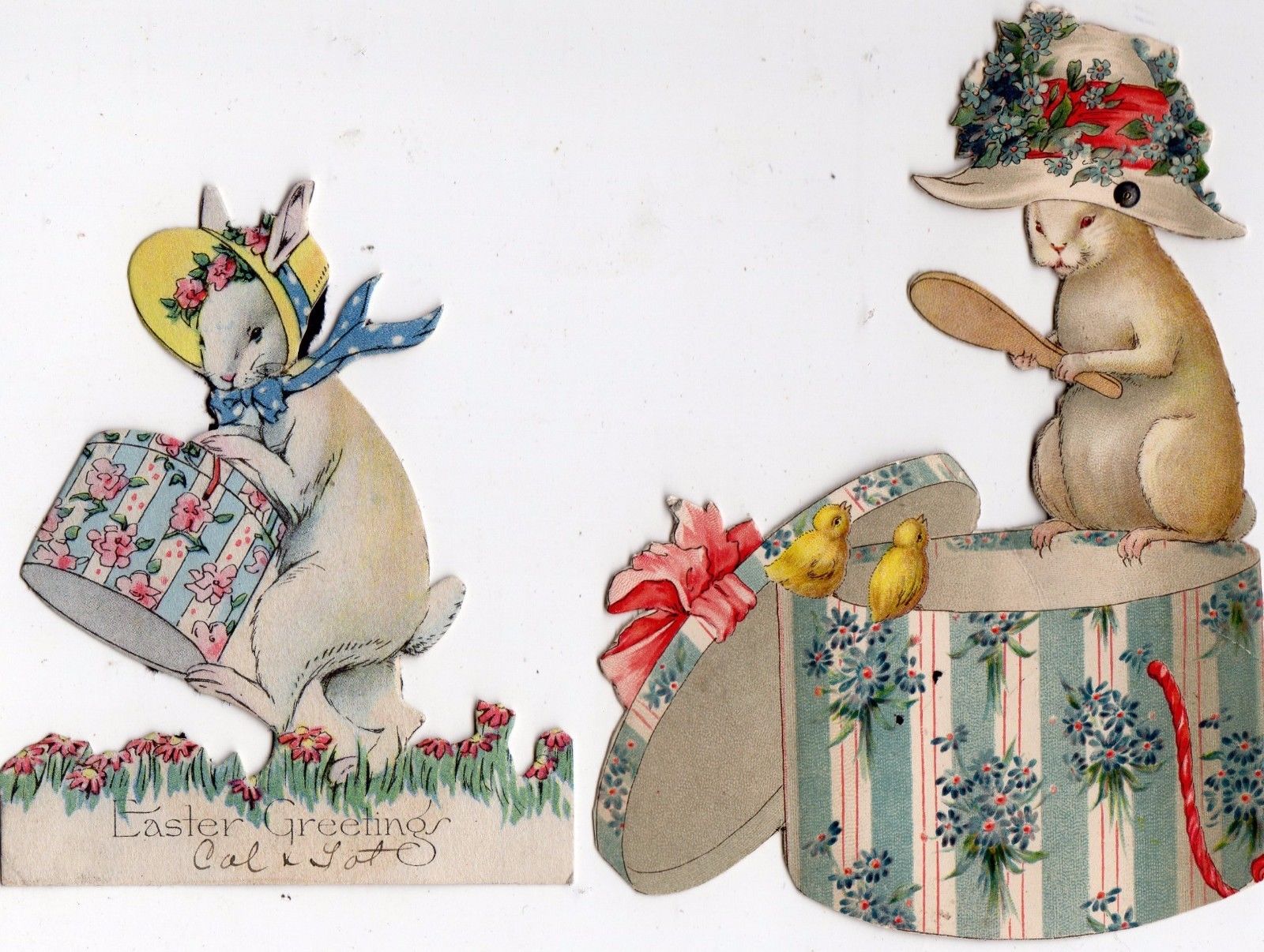 Title (ebay affiliate link): EARLY 1900 VICTORIAN DIECUT MECHANICAL EASTER RABBIT + LATER DIECUT CARD LOT
