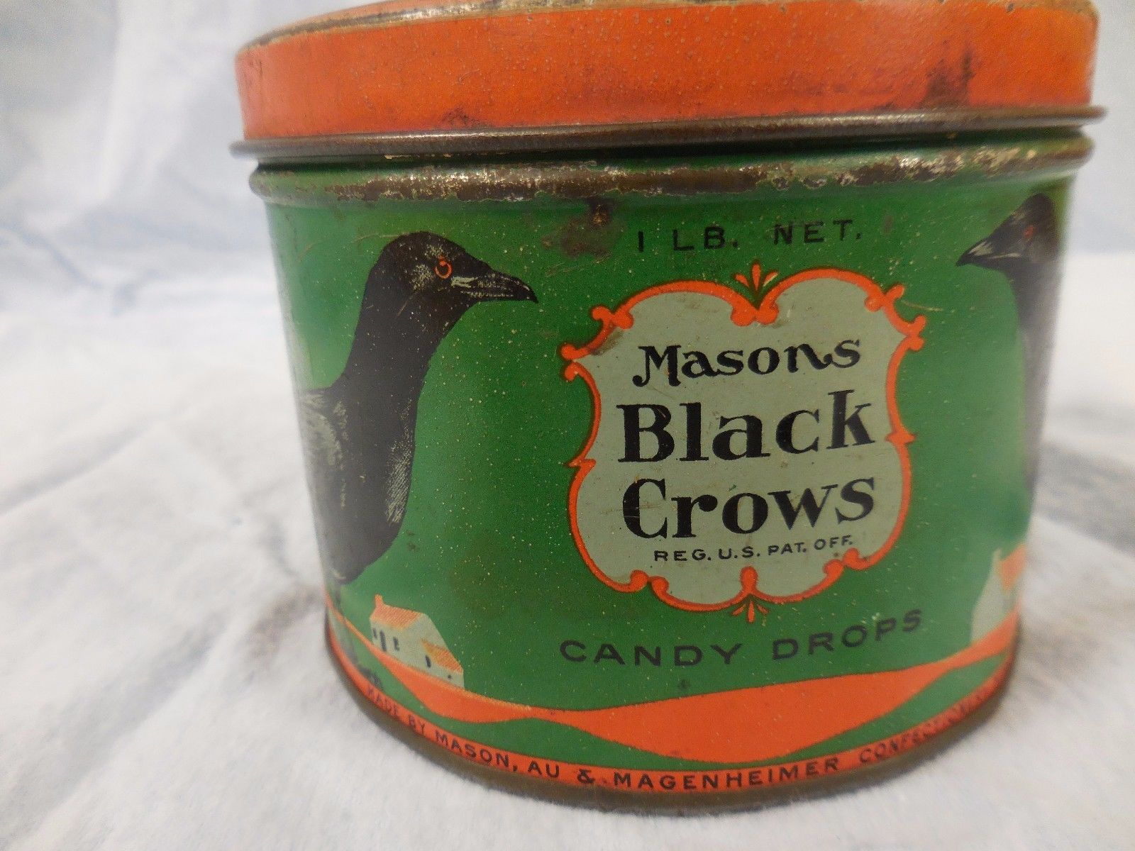 vintage candy tin Mason Black Crow candy drops 1 pound tin