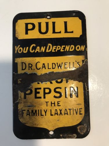 VINTAGE DR CALDWELL''S PEPSIN PORCELAIN DOOR PULL SIGN