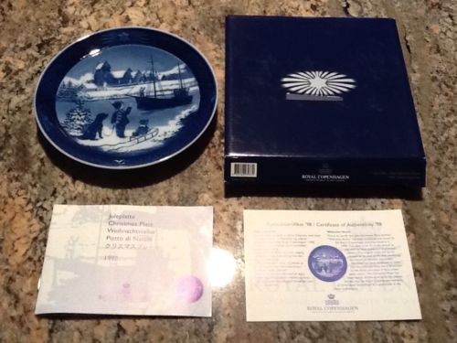 Title (ebay affiliate link): Royal Copenhagen Christmas Plate 1998 Welcome Home Boy Labrador Dog Ship