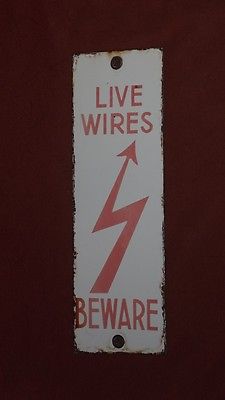 Vintage porcelain enamel sign LIVE WIRES BEWARE