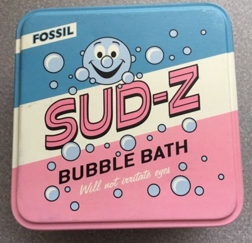 Title (ebay affiliate link): SUD-Z Bubble Bath FOSSIL TIN - 2012 - Bubbles - Pink & Blue - EUC