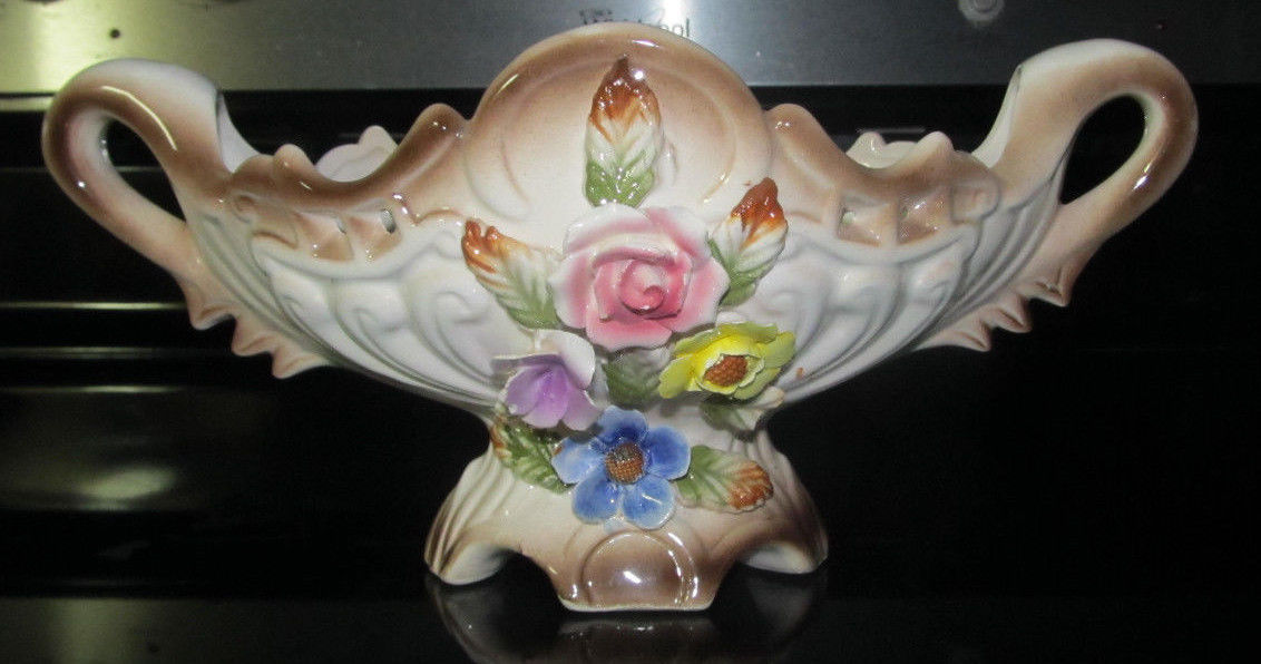 Title (ebay affiliate link): Vintage Raised Flowers Floral Ceramic Pottery Vase Bowl Italy Capodimonte