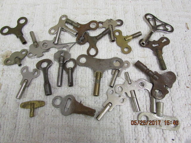 Title (ebay affiliate link): 24 Vtg Antique Clock Keys Brass Cast Iron Steel Lrg Small Open Barrel Furniture