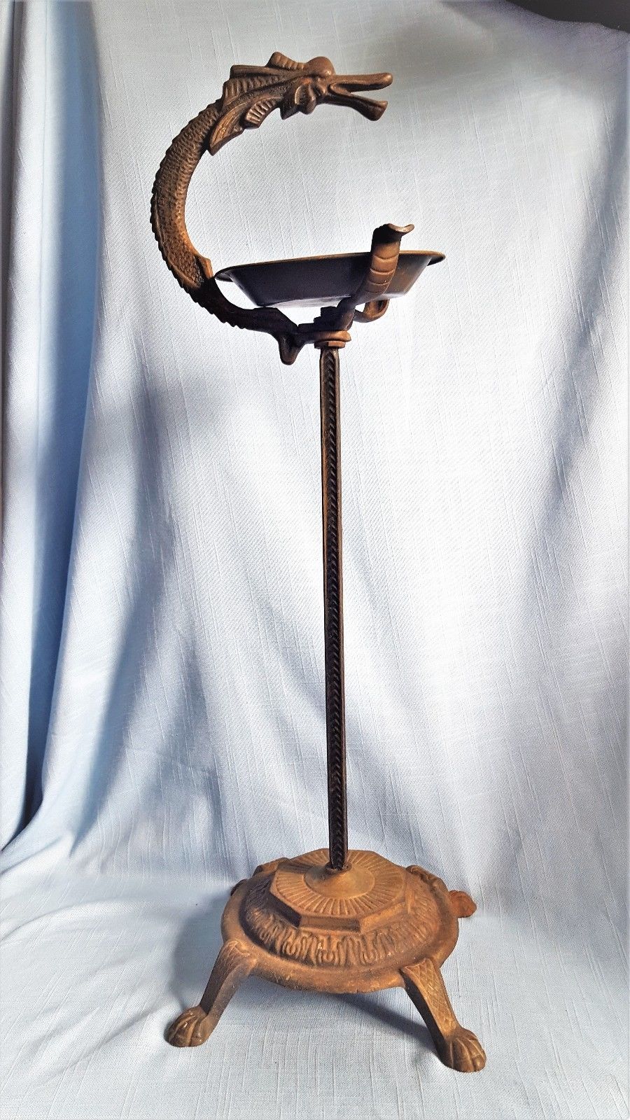 Title (ebay affiliate link): ANTIQUE CAST BRASS & IRON CIGAR ASHTRAY FLOOR SMOKE SMOKING STAND DRAGON HEAD