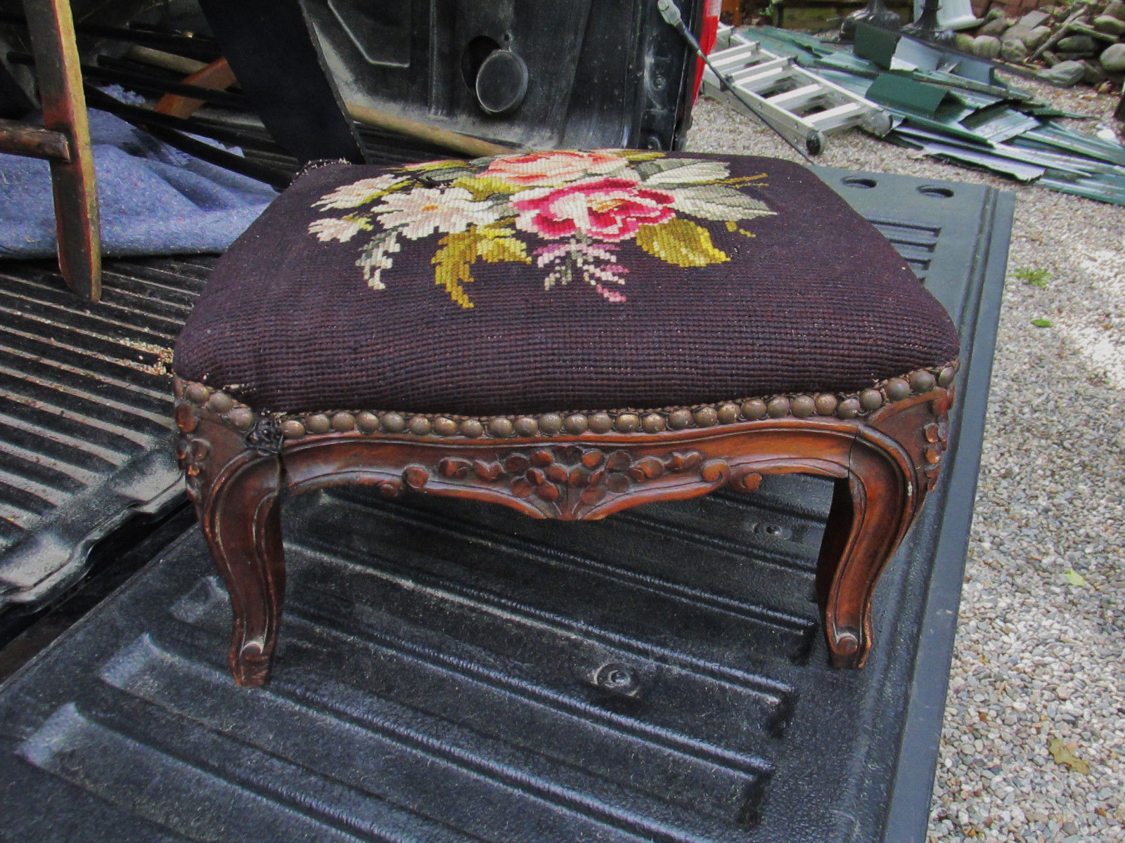 Title (ebay affiliate link): 1800S FANCY ALL ORIGINAL NEDDLE POINT CARVED FOOT STOOL