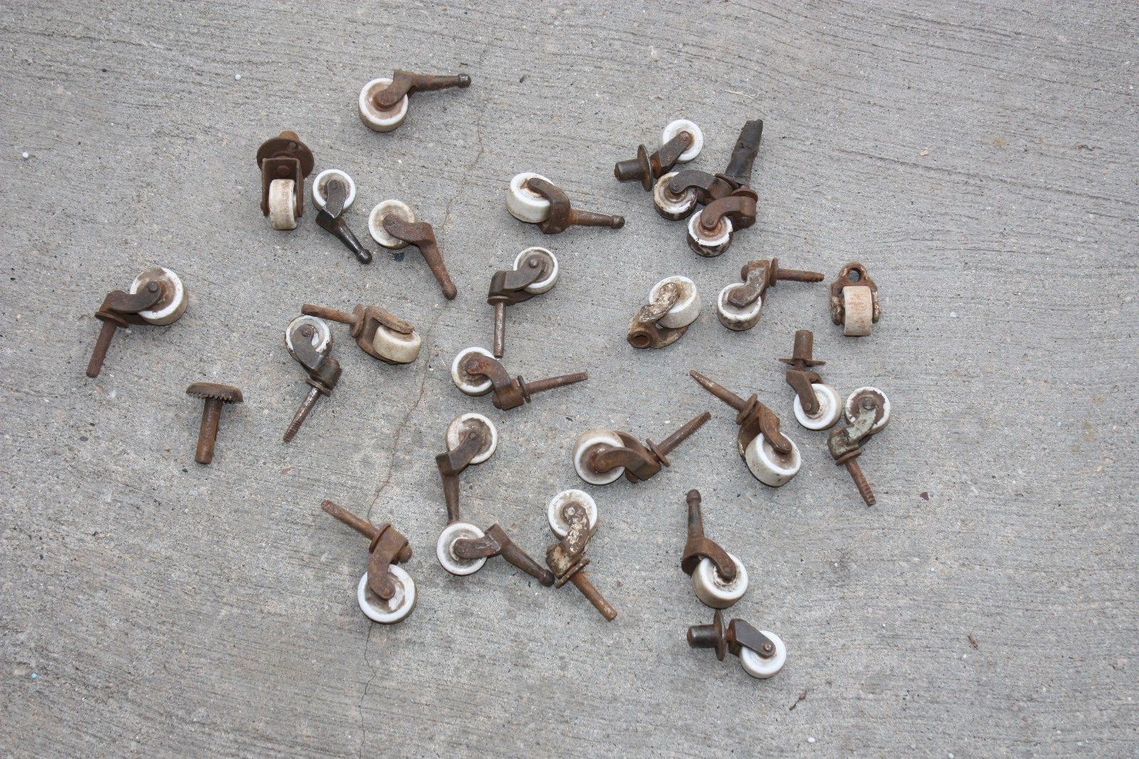 VINTAGE ANTIQUE CASTERS WHEELS PORCELAIN - Misc Lot Of 26 For Parts Etc.