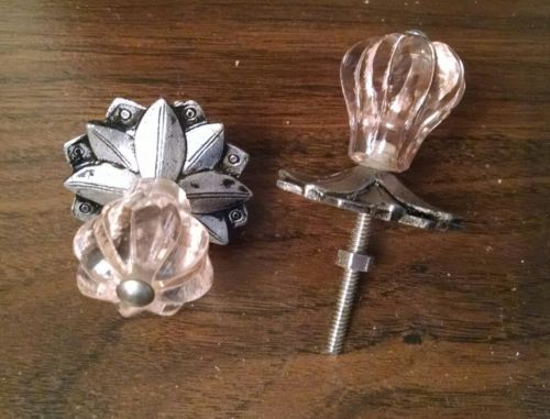 Vintage Antique Style Pink Depression Glass Cabinet Knobs Drawer Pulls Set Of 2