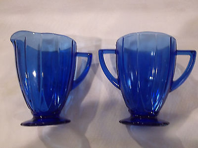 Vintage Newport Hairpin Depression Glass Sugar & Creamer Cobalt Blue
