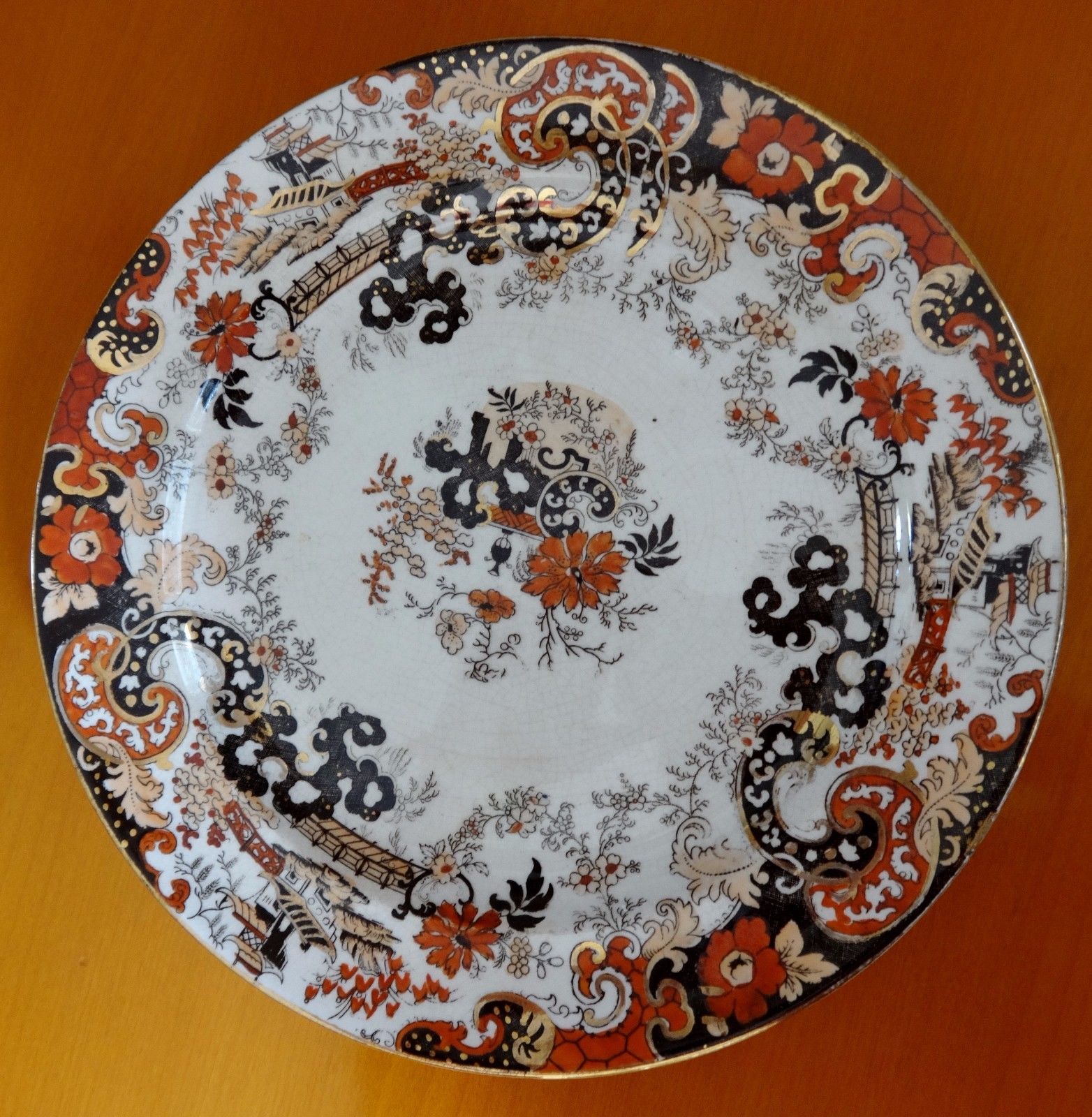 Antique Ironstone Dinner Plate Imari colors Mason''s pattern 465 9 1/2 " round