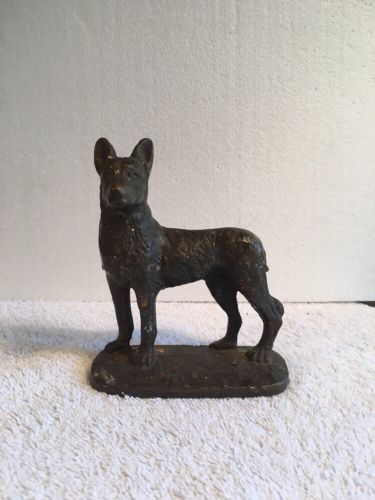 Antique Cast Iron German Shepard Bronzed Doorstop 1929 N.Y.C.