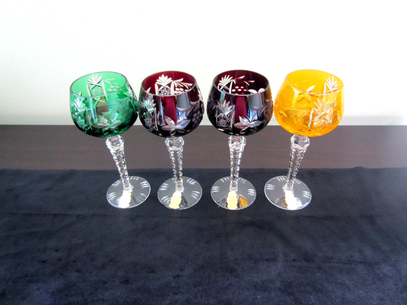 CRYSTAL FOUR HAND CUT COLORED GOBLETS (NEVER USED )