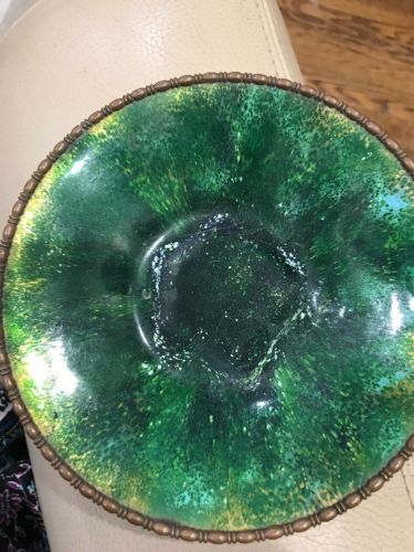 Vintage Serge Nekrassoff Arts & Crafts Enamel on Copper Dish Mid Century Green