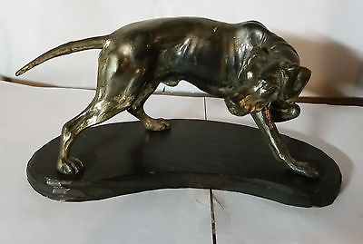 VINTAGE METAL DOG STATUE WITH WOOD BASE