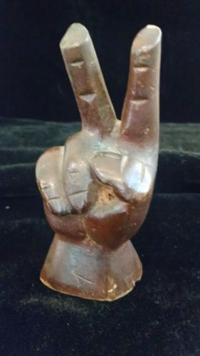 Title (ebay affiliate link): Vintage Peace Fingers Peace Sign Hand Carved Wood 4" Wood Carving Hippie Mod