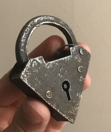 Authentic 18th Century Antique German Triangle Padlock Lock Iron