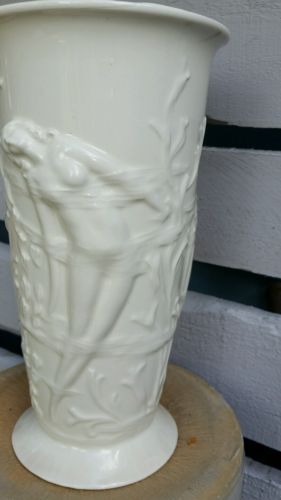 Antique Dancing Ladies Nudes Nymphs porcelain Vase 9" tall