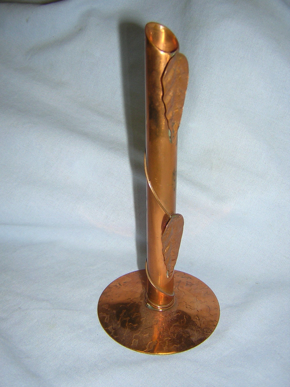 Title (ebay affiliate link): ANTIQUE ARTS & CRAFTS HAMMERED COPPER 6 1/2" LEAF BUD VASE ~ MADE IN MONTANA