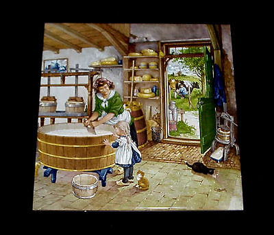 ROYAL MOSA HOLLAND WOMAN & CHILD WASHING CLOTHES 6" TILE SIGNED BY J.C. HUNNIK